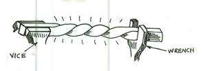 (b) With the aid of a sketch, describe in three steps how to twist a square mild steel bar.