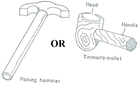(b)(i) List two striking tools used in sheet metalwork.