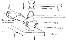 (b) With the aid of a sketch, show the process of swaging in forging.