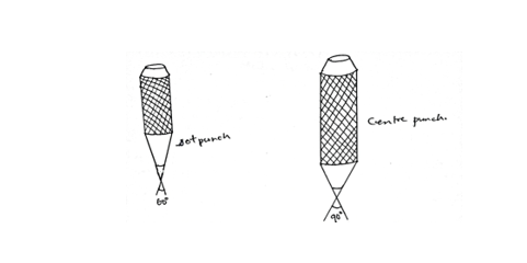 (a) Using sketch only, differentiate between dot punch and centre punch.