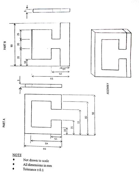 (a) flat mild steel plate, 95mm x 60mm x 3mm (2 OFF);