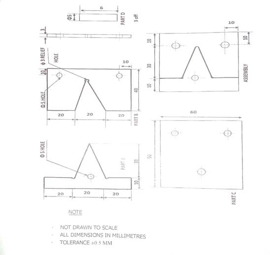 (a) flat mild steel plate, 62 mm x 42mm x 3mm (2 OFF) for parts A and B;