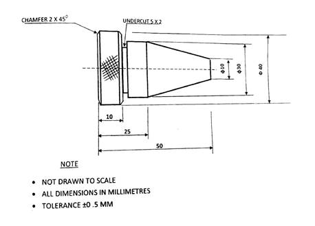 The diagram below shows the detailed view of a machine part. Produce the part using the material supplied.