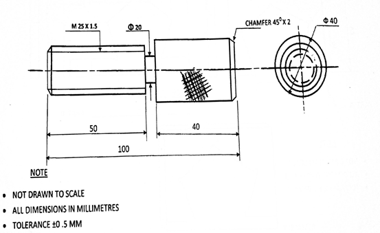 (a)        one piece free cutting mild steel rod, Æ50 mm x 120mm;