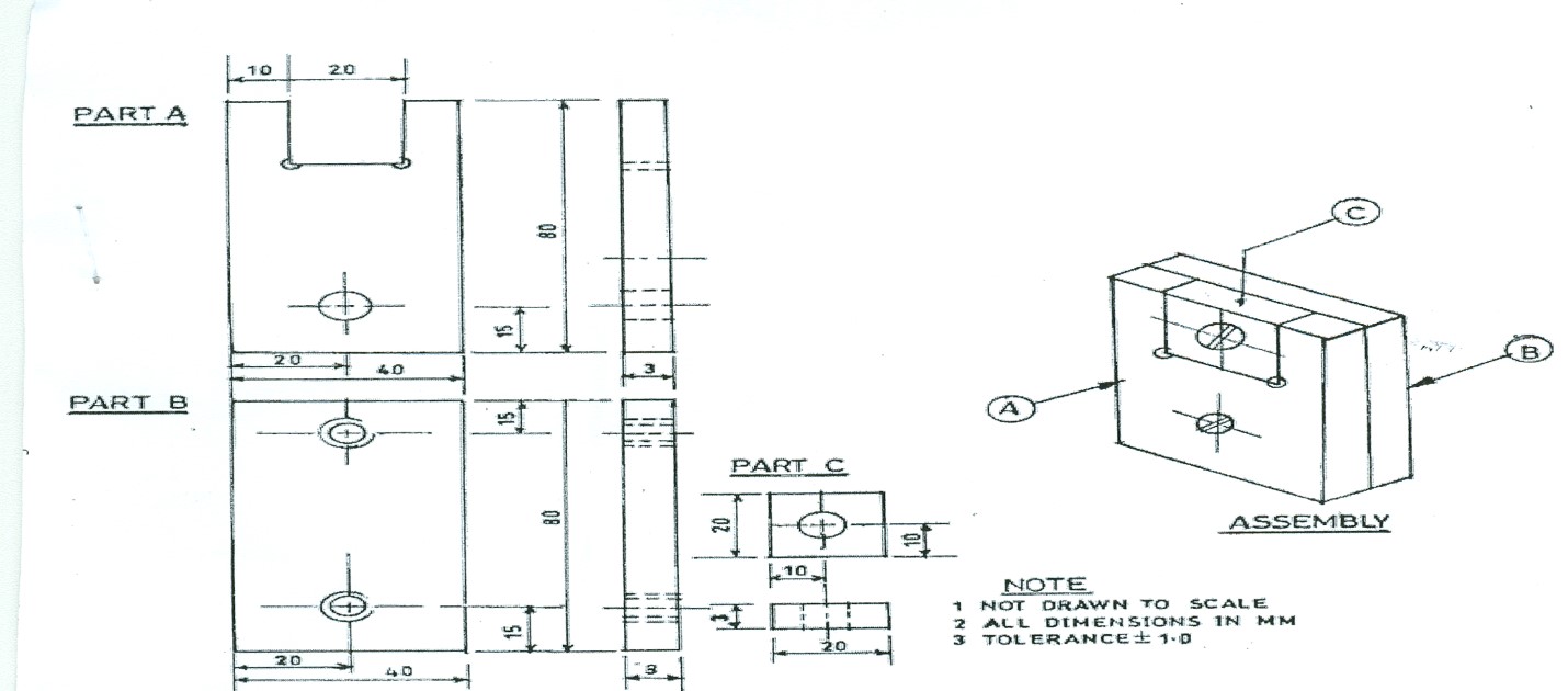 1. one flat mild steel plate, 170 mm x 45 mm x 3 mm for parts A and B;