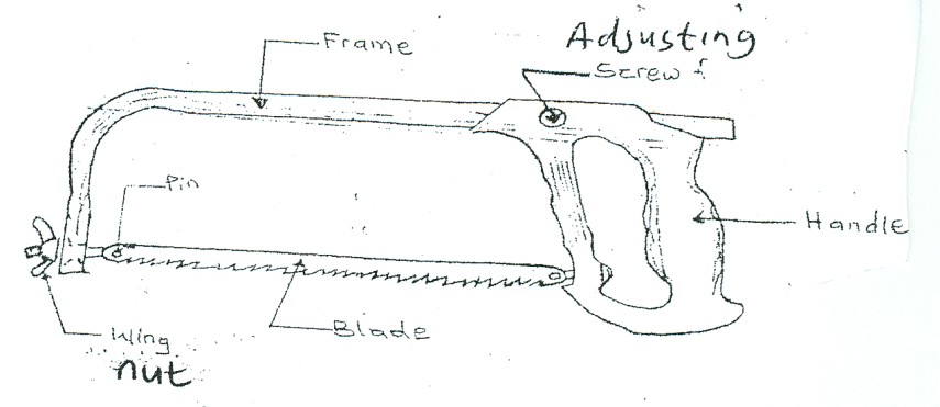 (a) (i) Sketch an adjustable hacksaw with the blade in position;