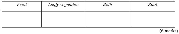 (a) This question was attempted by most candidates. Majority of the candidates correctly classified each crop into its appropriate group.