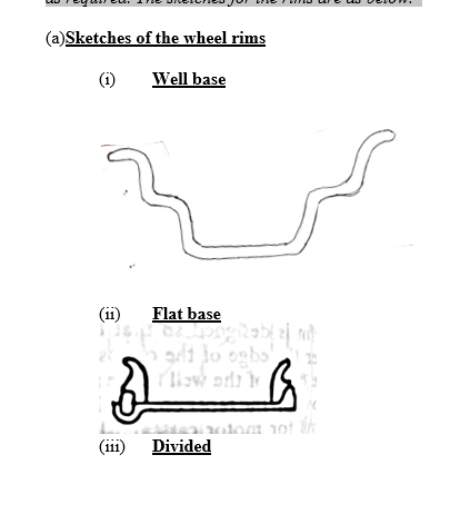 The attempts on this question was relatively good. However, a high number of Candidates who attempted the question could not sketch the types of wheel rims as required. The sketches for the rims are as below.