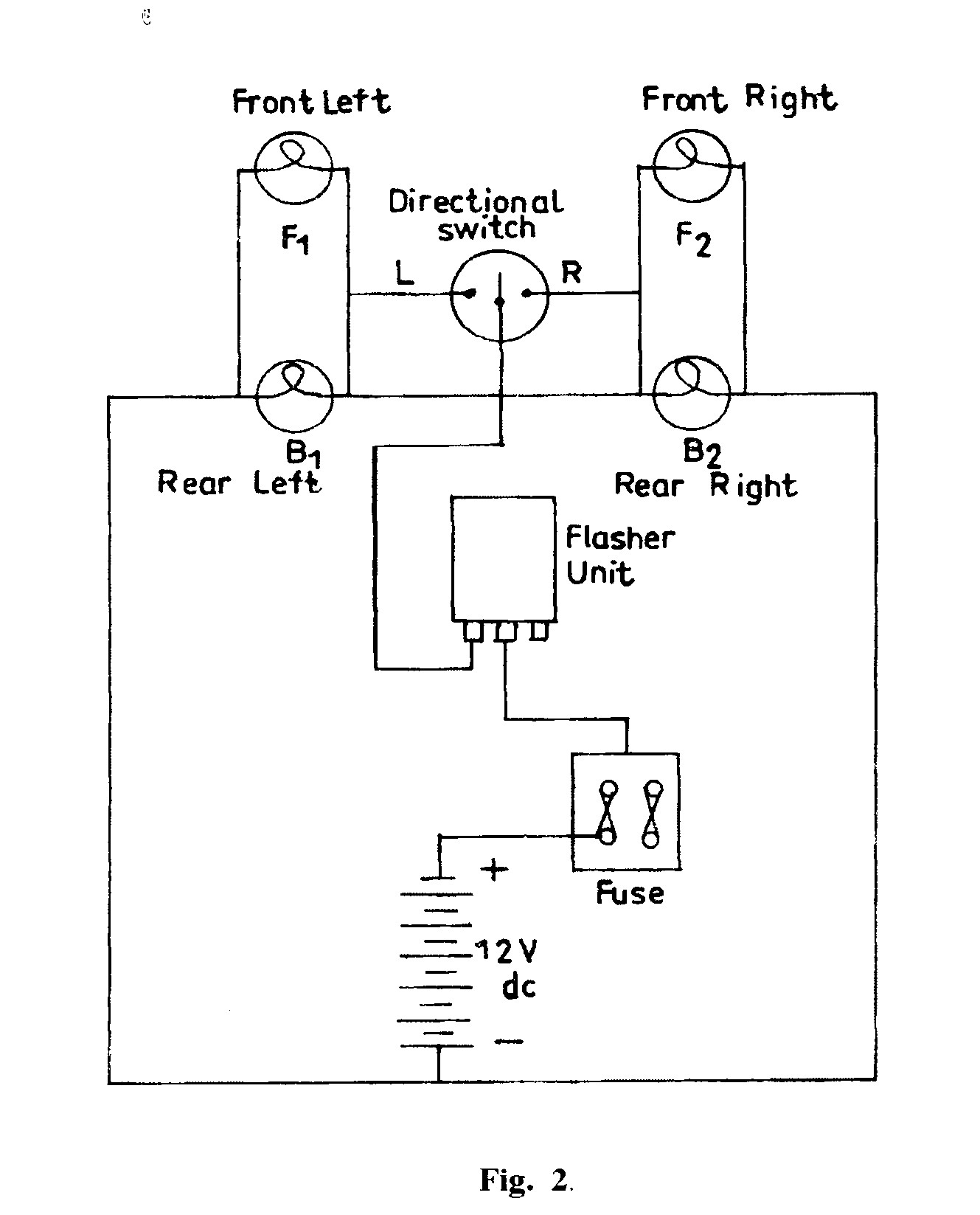 Closing the switch to R controls lamp F2 (front right) and B2 (rear right). Closing the switch is in neutral (centre position), it does not operate any of the lamps.