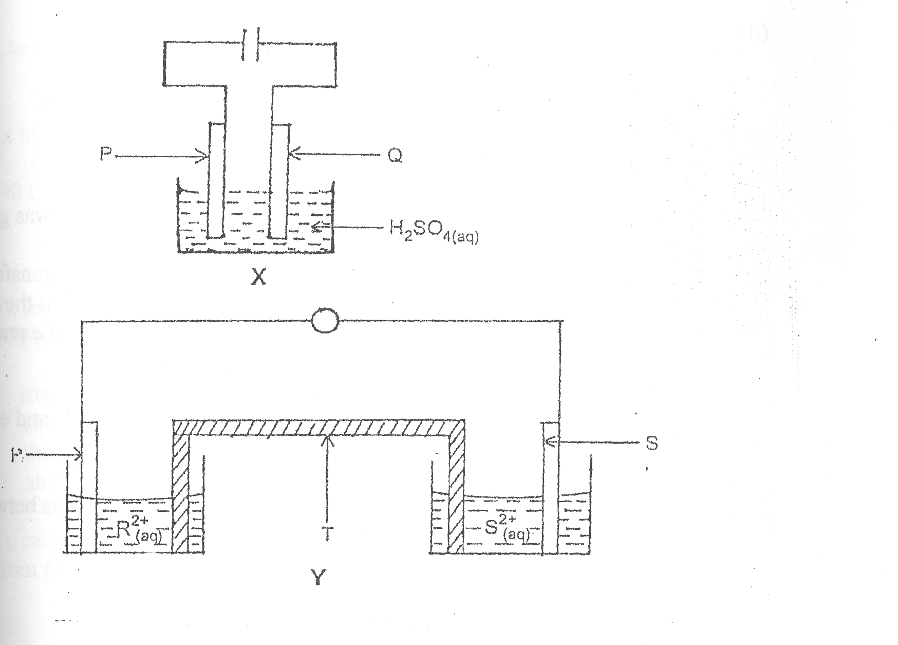 In part (b)(iii), candidates knew that P was the anode in X and that R was the anode in Y. They also knew that T is the salt bride in (b)(iv).