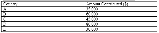 The countries listed in Table X below contributed money as indicated for a joint project in the year 2017. Use the data in the table to answer the questions that follow.