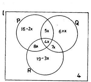 In part (a), majority of the candidates were reported to have added the elements in the universal set,(U), and equated it to 125 to obtain .Solving this equation gave.Number of elements in 1, n1), . Some candidates were reported not to add 4 which was outside the three intersecting sets and this give them a wrong value of . Others were also reported not to have understood R1, the compliment of R.