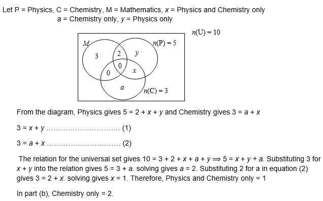 In part (a), they were expected to use the assigned letter to subject and the value to draw Venn diagram as shown: