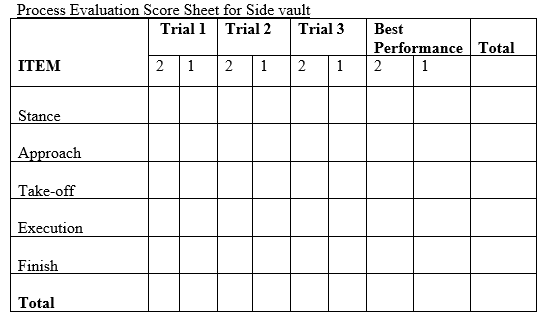 In performing side vault, demonstrate the stance, approach, take-off, execution and finish.