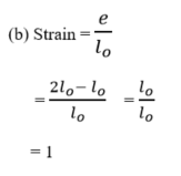 (b) A rubber band is stretched to twice its original length. Calculate the strain on the rubber band.