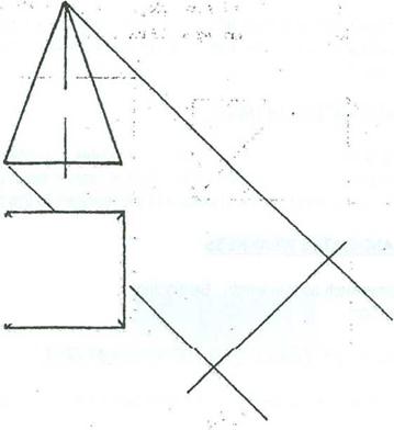 Complete the construction of the auxiliary plan of a square based pyramid started in the figure below.