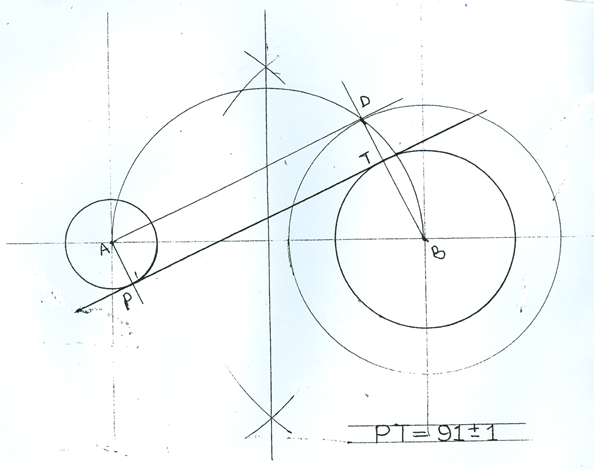- draw a line at A parallel to BD to the smaller circle Ø30 to locate point P;