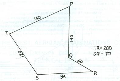 (iii) join P to R and draw a line from Q parallel to PR to locate point M;