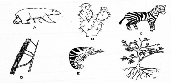 (b) (i) Biological features that adapt A,B,C and E to their habitat