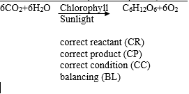 (g)Balanced Chemical equation of photosynthesis
