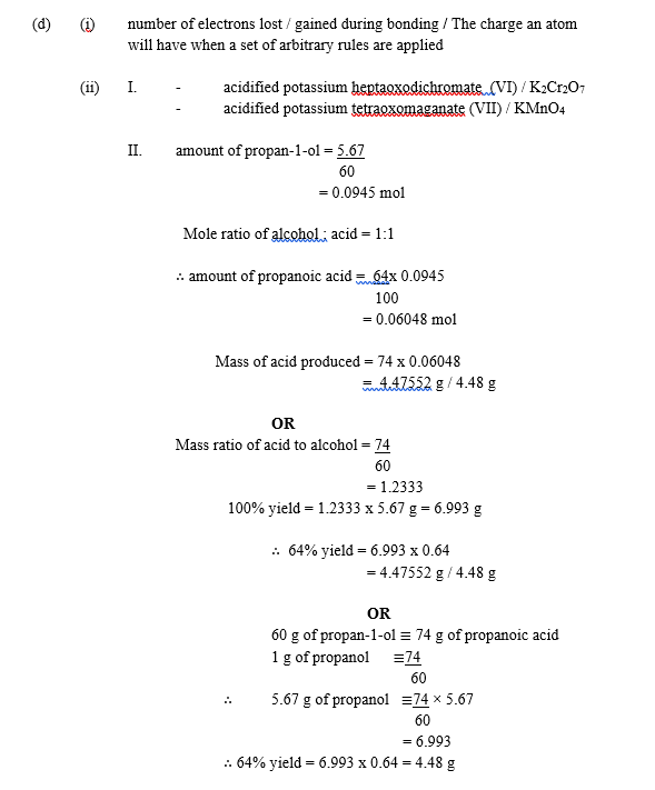 In part (d), majority of the candidates defined the term oxidation number correctly.