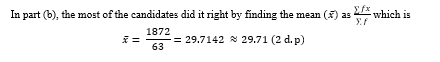 In part (a), it was expected that the candidates present the frequency distribution table as shown: