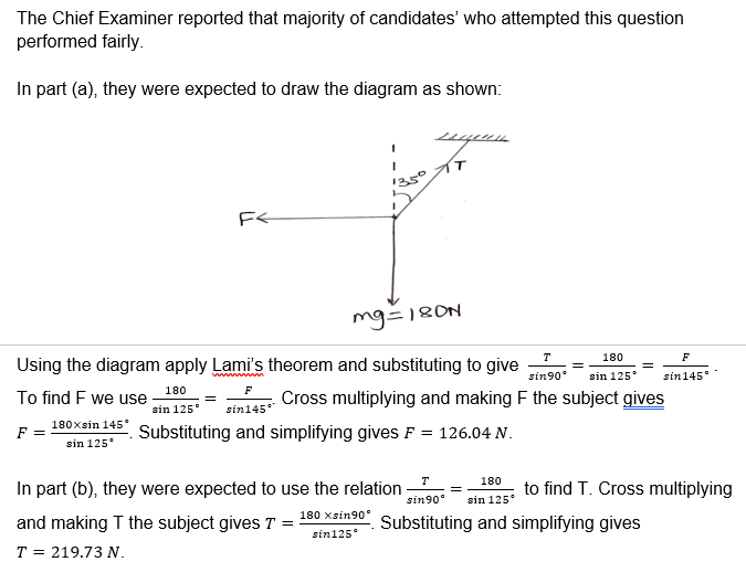 A body of mass 18 kg is suspended by an inextensible string from a rigid support and is pulled by a horizontal force F until the angle of inclination of the string to the vertical is 35. If the system is in equilibrium, calculate the: