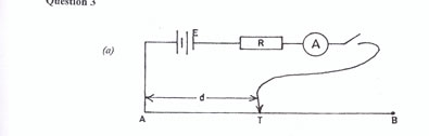 This question on electricity was attempted by many candidates and it was fairly well attempted. Candidates were able to carry out the observation of d and I in trend to the required decimal places. Plotting of the graph of I-1 against d pose no challenge to most of the responding candidates. Similarly the slope was correctly determined.