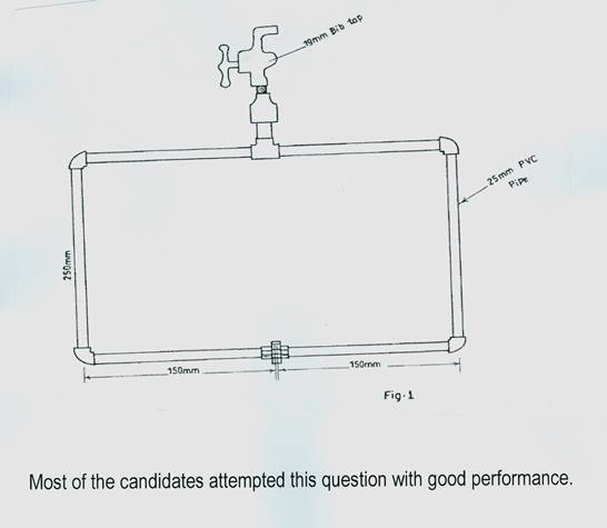 Using a push-fit pipe jointing technique, cut and fix a length of 25 mm PVC pipe as shown in fig.1.