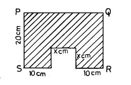 The diagram shows a rectangle PQRS from which a square of side x cm has been cut. If the area of the shaded portion is 484 cm2, find the values of x.