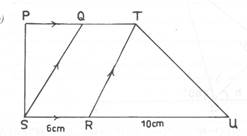 In the diagram, PT // SU, QS // TR, /SR/ = 6cm and /RU/ = 10cm. If the area of