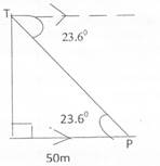 - The angle of depression of a point P on the ground from the top T of a building is 23.60. If the distance from P to the foot of the building is 50 m, calculate, correct to the nearest metre, the height of the building.