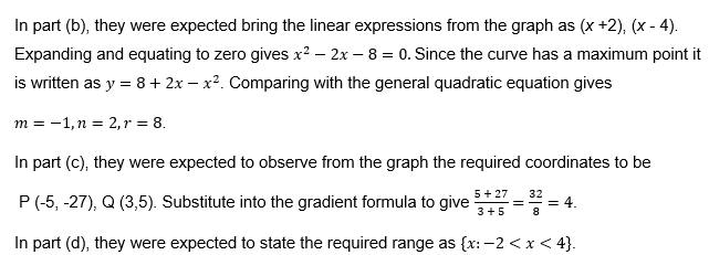 In part (a), they were expected to state the scale as x- axis: 2 cm to 2 units and y-axis 2 cm to 10 units.