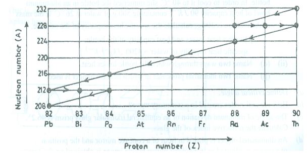 The diagram above shows part of a radioactive decay series. Use it to answer the following questions.