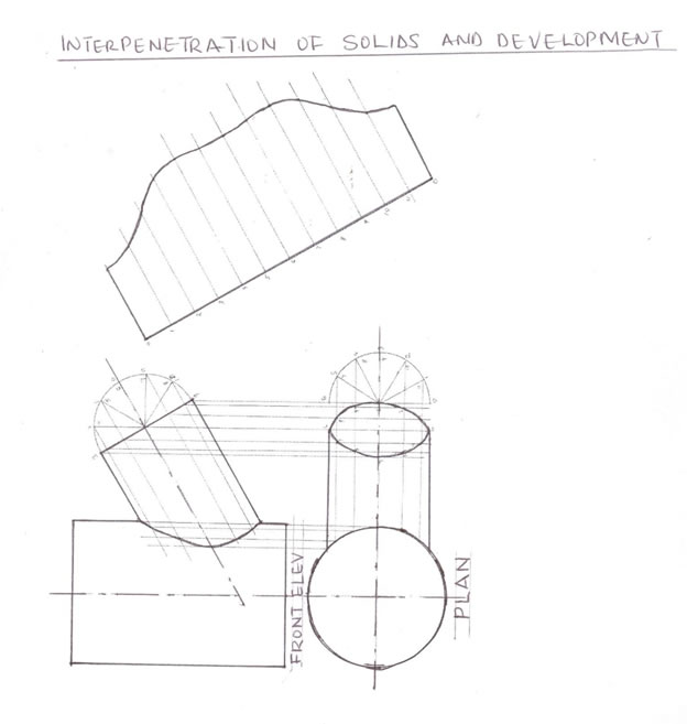 (1) Two unequal pipes diameter 45 and 60 respectively intersect at 30o as shown above.