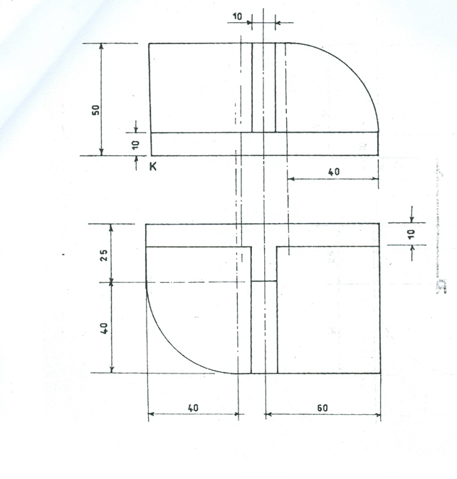 - divide line AE into 10 equal parts and transferring divisions to line DF;
