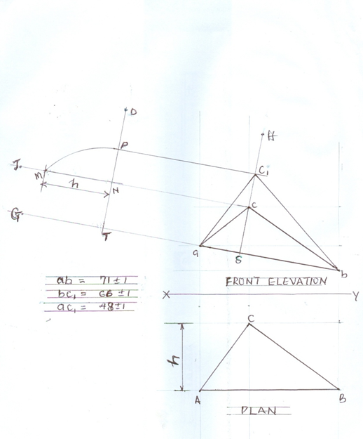 (viii) join lines bc1 and ac1 to obtain the true shape of the triangular lamina abc1;